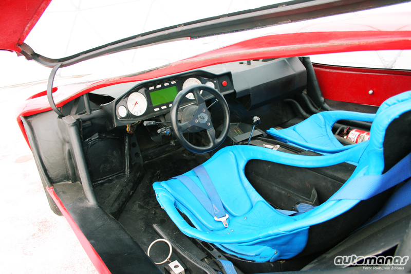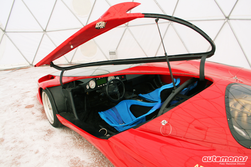 Į akį krenta ypatingos formos kėdės. Nors automobilio aukštis vos iki mano liemens, tačiau tikrai negali sakyti, kad automobilyje guli. Tiesa, kojos tikrai užverstos į viršų.