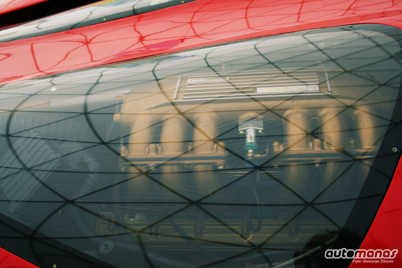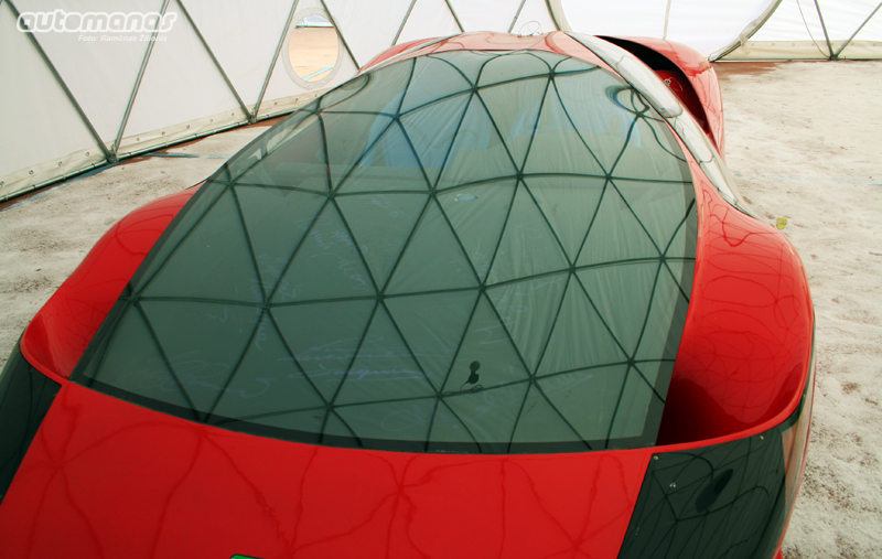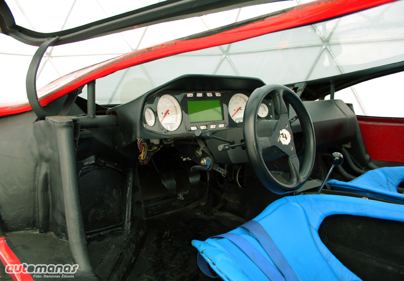 Priekinis stiklas toks plokščias, kad po juo ilgiausia man matyta prietaisų panelė. Ji išnaudota kaip garbės lenta - ten savo parašus sudėjo visi prie projekto prisidėję asmenys.