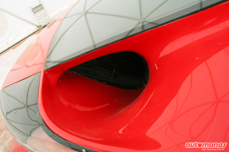 Galinis automobilio gaubtas, po kuriuo miega V12 variklis, pusiau stiklinis. Kaip ir įprasta, Ferrari variklį reikia matyti aplinkiniams. Nes tai - geriausia automobilio dalis.