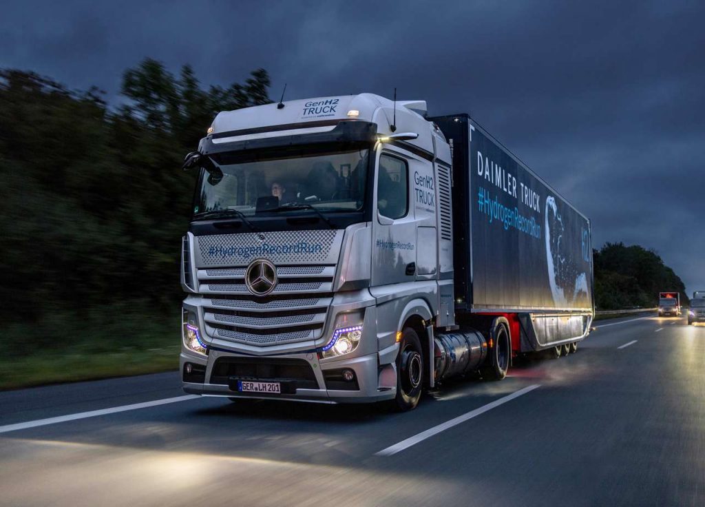 Vienas iš didžiausių sunkvežimių gamintojų pasaulyje „Daimler Truck“ yra įsipareigojęs Paryžiaus klimato susitarimu, jog 2039-tais metais, JAV, Europai ir Japonijai siūlomi nauji sunkvežimiai turės būti CO2 neutralūs. Kuro elementų technologija leidžia didinti sunkiojo transporto autonomiją, nes vandenilio pildymo stotys galės būti tose pačiose patalpose ir šalia tų pačių siurblių, kuriais pildomi dyzelinių ar benzininių automobilių bakai. Vandenilis taip pat yra daugiau nei dvigubai energetiškai tankesnis už iškastinį kurą ir todėl gali būti naudojami mažesni ir lengvesni bakai. Kuro elementų baterijos taip pat yra lengvesnės nei tradiciniai elektromobilių akumuliatoriai, o galimas vežti svoris yra vienas iš svarbiausių ilgų nuotolių transporto rodiklių.
