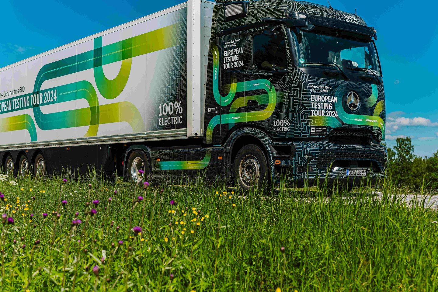 Krovininių automobilių įmonė, demonstruodama pasirengimą dirbti realiomis sąlygomis, išleido du prieš serijinius prototipus į kelionę per 23 Europos šalis. Kelionė prasidėjo Vokietijoje, Frankfurte prie Maino, vėliau buvo aplankytos Danija, Švedija, Norvegija, Suomija, Estija, Latvija ir Lietuva. Tolimesnis maršrutas vingiuos per Lenkiją, Čekiją, Slovakiją, Kroatiją, Slovėniją, Italiją, Monaką, Prancūziją, Ispaniją, Gibraltarą, Portugaliją, Belgiją, Olandiją ir Liuksemburgą, finišuojant ten pat, kur pradėta: Vokietijoje. Kiekvienas sunkvežimis, tempdamas 40 tonų svorį, savo eiga įveiks daugiau nei 13 tūkst. kilometrų. Šį savaitgalį įsikrauti savo talpių baterijų sunkvežimiai sustojo Lietuvoje (Garliavoje, Kauno r.), taip užbaigdami šiaurės Europos išbandymus.