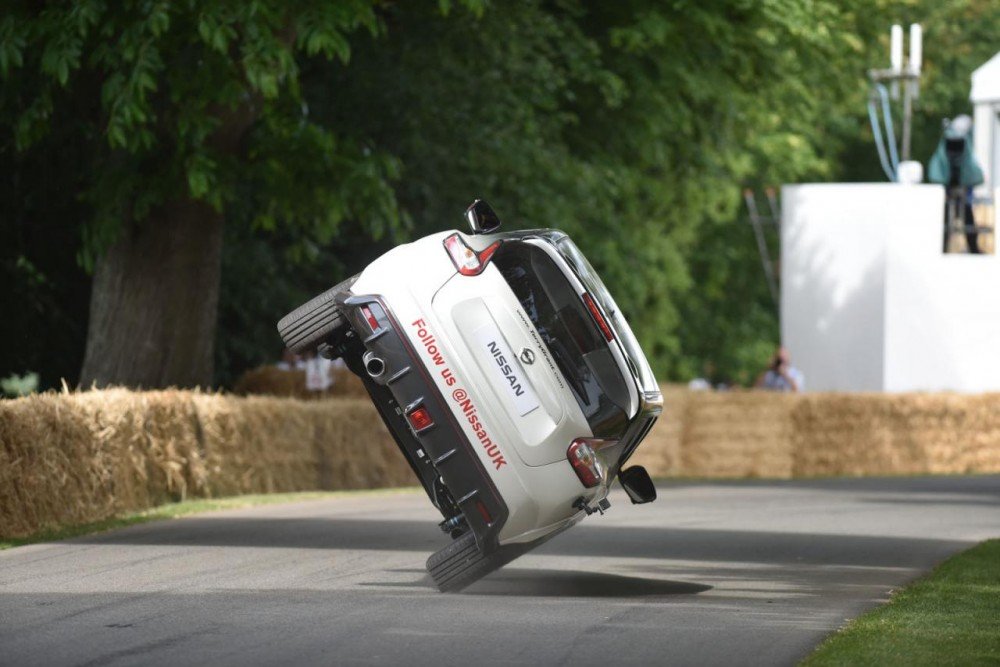 „Goodwood Festival Of Speed“ netrūksta nei automobilių, nei įvairiausių pramogų. Kaskadininko Terry Granto vairuojamas „Nissan Juke Nismo RS“ sugebėjo vienos mylios atstumą įveikti važiuodamas ant dviejų ratų.