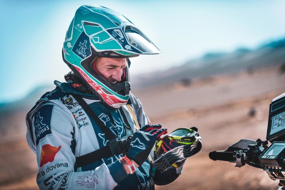 Vakar akmenų paragavę motociklininkai, šiandien mėgavosi greita trasa. #ZigmasDakarteam nariui Arūnui Gelažninkui diena buvo sėkminga.
