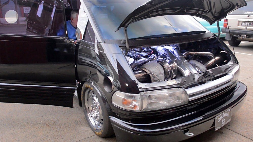 „Toyota Previa“ arba „Toyota Tarago“ (Australijoje) buvo aprūpintas didžiuliu 8 cilindrų „Chevrolet“ benzininiu varikliu. Šiam amerikietiškam motorui kompaniją palaiko net du 75 mm „Turbonetis“ turbokompresoriai, „Powerglide“ automatinė pavarų dėžė, labai plačios „Slick“ tipo padangos.