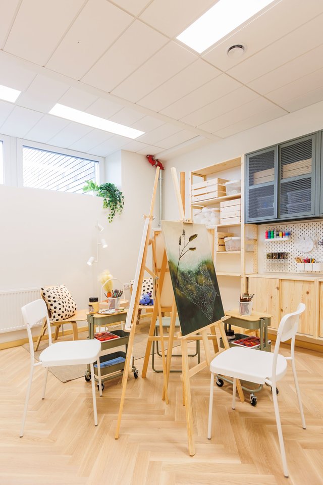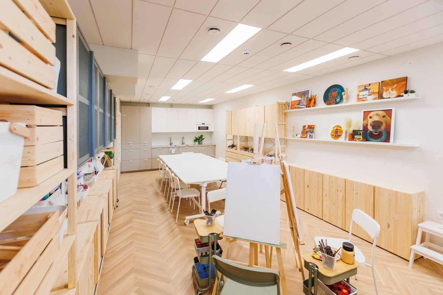 Kūrybinėse patalpose saugomi ir visi jos lankytojų darbai. Kad erdvė taptų patogesnė ir universalesnė, į pagalbą pasitelktos IKEA interjero dizainerės Dominyka Butkutė ir Ema Poškutė.