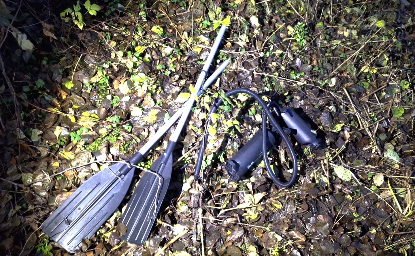 Netoliese pasieniečiai aptiko ir jo paliktą atsigabentą guminę valtį.