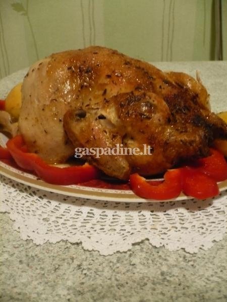 Mes mėgstam keptą vištą, turbūt kaip ir daugelis. Kepu ją įvairiai; su raugintais kopūstais, ryžiais,obuoliais...Šį kartą višta su citrina ir rozmarinais...man ji tobula....atrodo skaniausia kokią iki šiol valgiau....