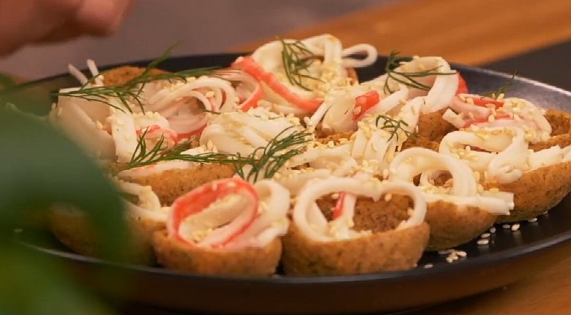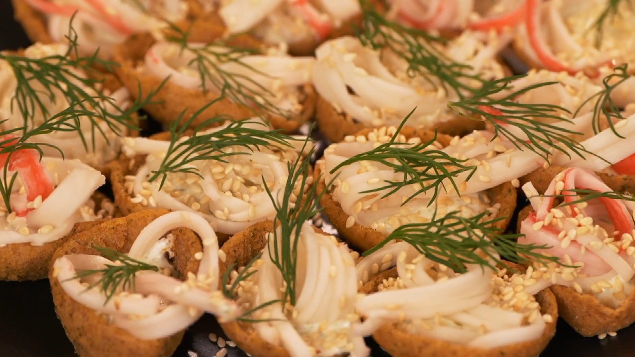 Svečių pamėgti ruginiai krepšeliai su surimi (nuotr. stop kadras)