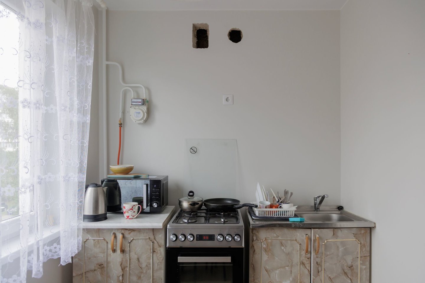 „Virtuvė – labai mažytė, todėl čia trūksta daugiau spintelių, kad galėtume sutalpinti visus daiktus. Svečiams užsukus, nesinori, kad daiktai būtų visur išmėtyti.