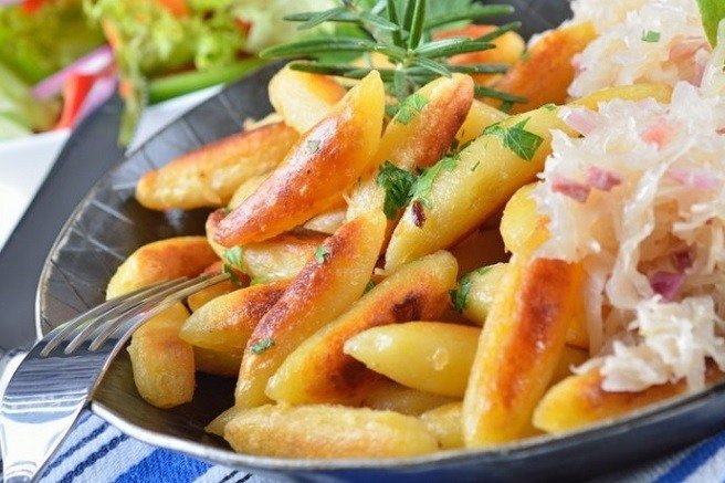 3. Po to patiekiame su raugintais kopūstais, raugintais agurkais arba grietinės bei sviesto padažu. Skanaujame!