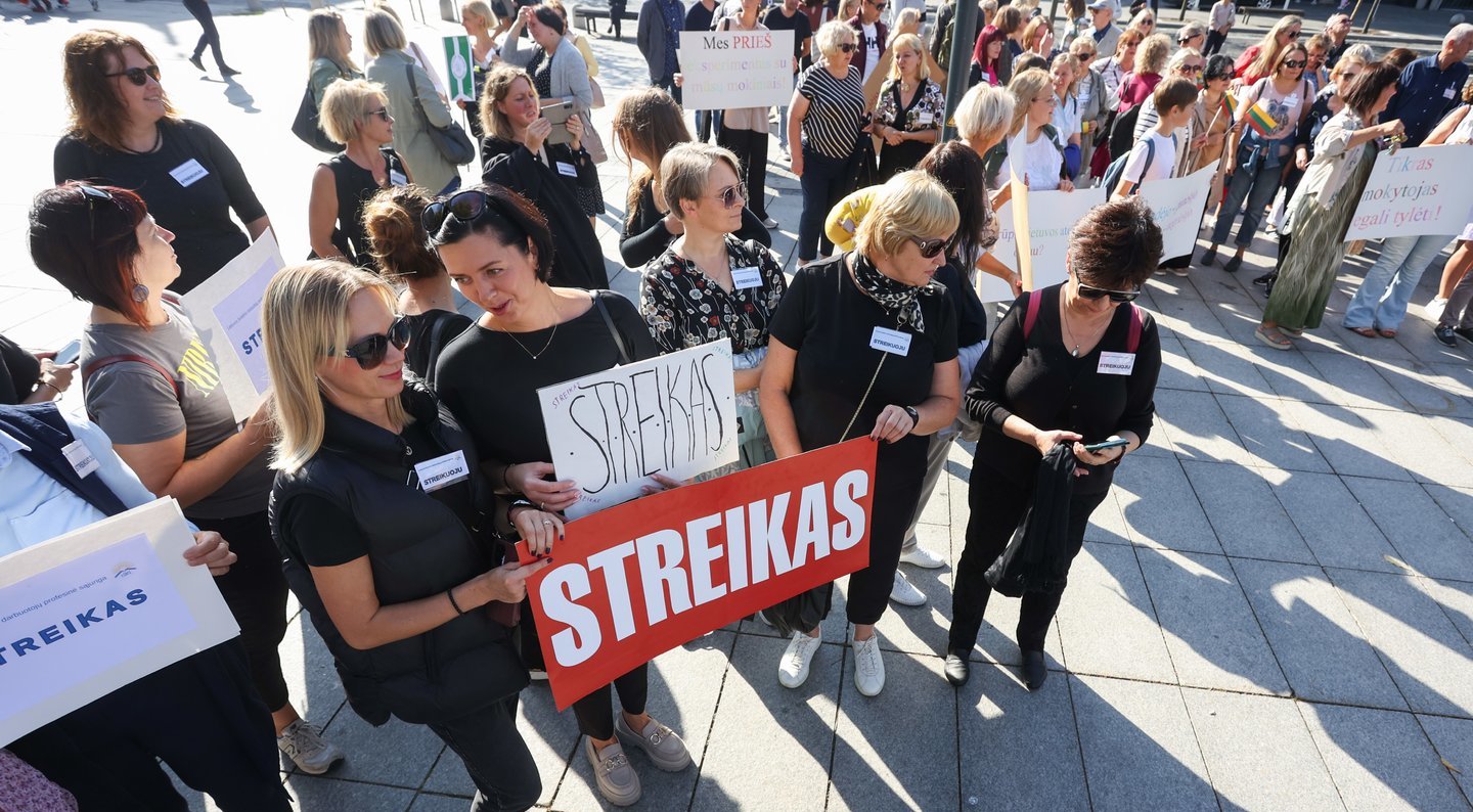 Mokytojai į darbą nėjo beveik dvi savaites, nesutarę su Vyriausybe dėl to, kiek kitąmet turėtų augti pedagogų atlyginimai.