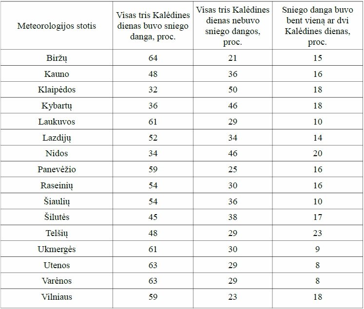 „Esame darę tyrimą, kaip dažnai pasitaiko, kad bent vieną dieną iš trijų šventinių (Kūčių, Kalėdų ir antrosios Kalėdų dienos) iškrinta sniegas. Tai kažkur 60 proc., ne 50 proc., kad bent vieną dieną iš šių trijų dienų sniego būna.
