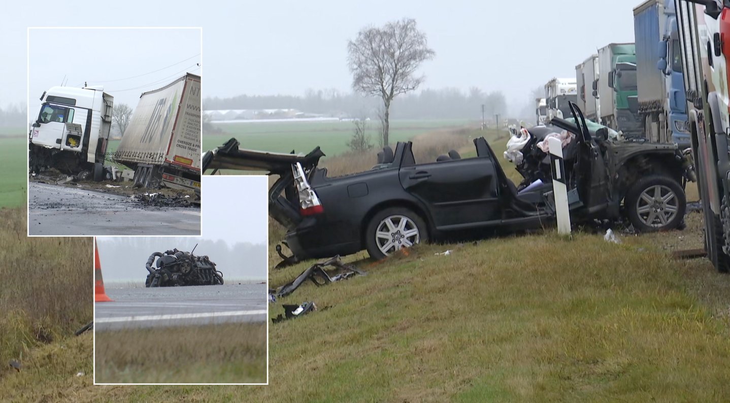 Smūgis buvo toks stiprus, kad iškrito net „Volvo“ variklis, o suknežintas lengvasis automobilis nuskriejo į šalikelę.