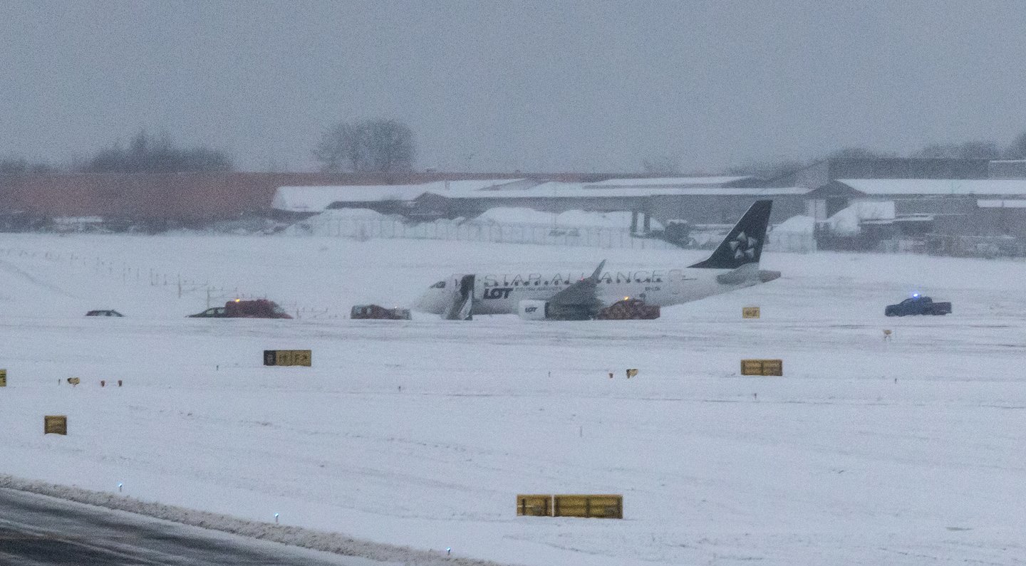 Trečiadienį 13.43 val. Vilniaus oro uoste iš Varšuvos nusileidęs „LOT Polish Airlines“ avialinijų orlaivis nuvažiavo nuo riedėjimo tako.