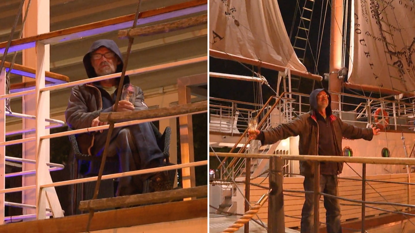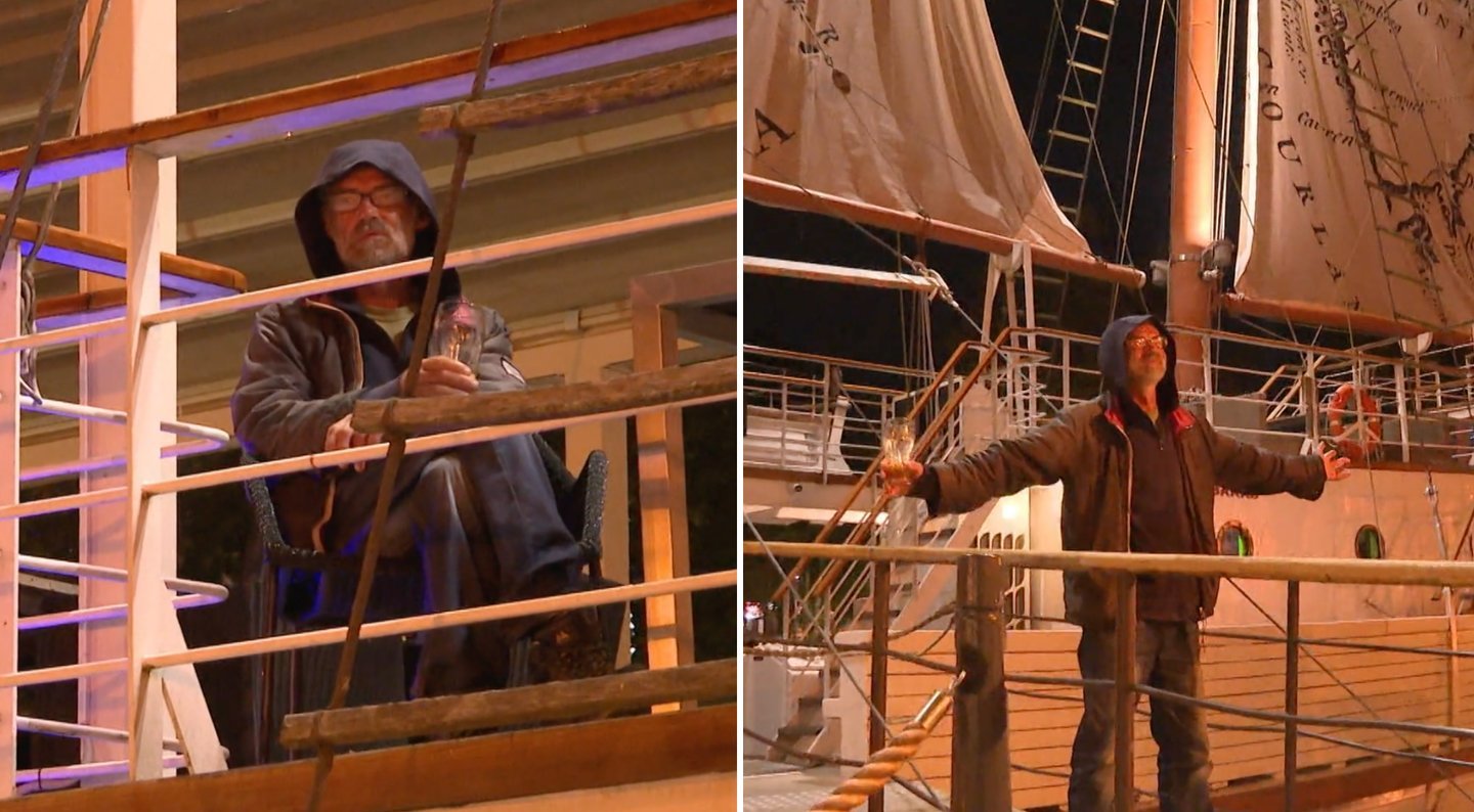 Tuo tarpu vyriškis laive gurkšnojo alų ir į suirutę ant kranto visai nereagavo. Pritraukus vaizdą buvo aiškiai matyti keleivio fizionomija – tai neseniai policijos kalbintas vyriškis. Nesiseka vaikščioti gatvėmis – tai nusprendė plaukioti. Paskutinis Klaipėdos piratas jautėsi puikiai ir, kol alus nesibaigs, į kalbas su apsaugininkais, rodos, nesileis.