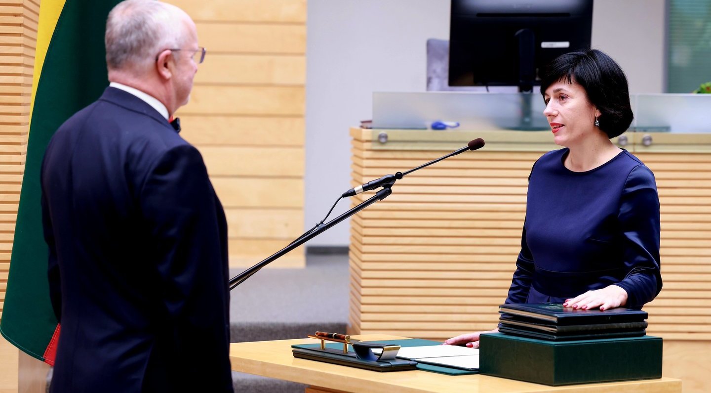 Antradienį Seime prisiekė paskirtoji kultūros ministrė Vaida Aleknavičienė bei Krašto apsaugos ministerijai (KAM) vadovauti pradėsiantis Robertas Kaunas.