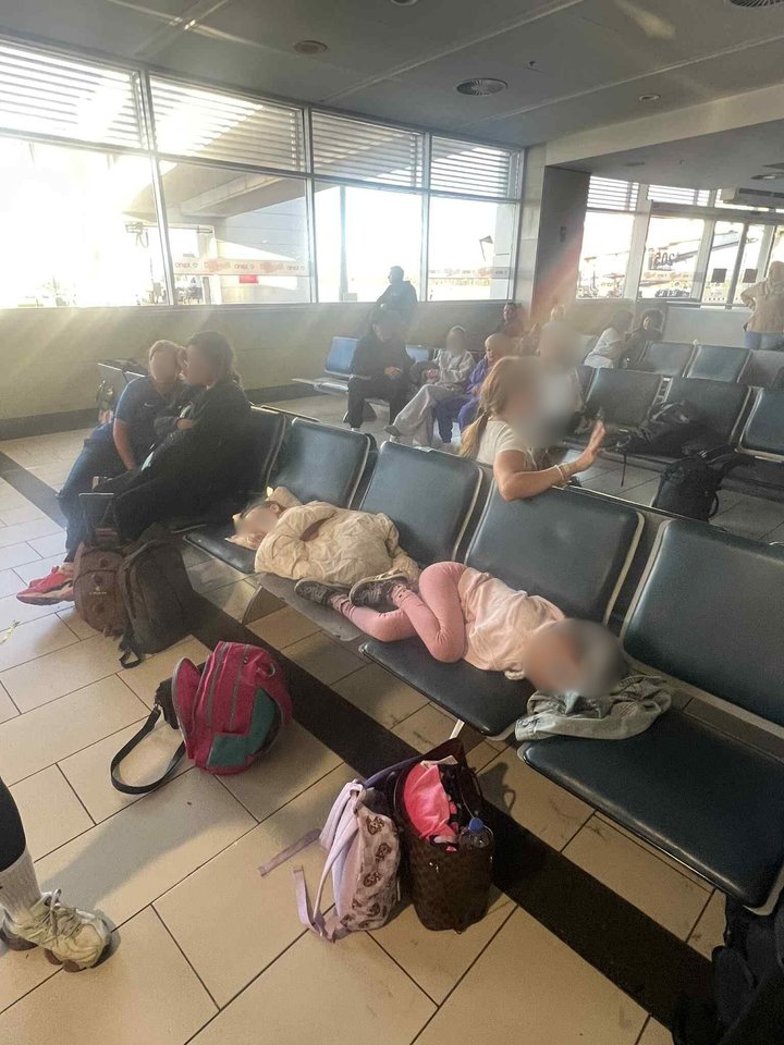 „Jau daugiau nei 15 valandų sėdime oro uoste. Čia yra žmonių, o mūsų lėktuvas, talpinantis apie 400 keleivių, vis dar neišskrenda.