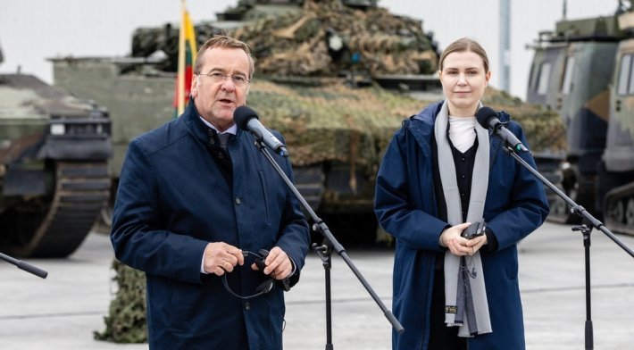 „Štai kodėl mes esame čia. Vokietija savo įsipareigojimus vertina labai rimtai. Laikomės savo žodžio ir esame kartu su sąjungininkais. Esame pasirengę apginti Baltijos regioną“, – kalba Vokietijos gynybos ministras Borisas Pistorius.