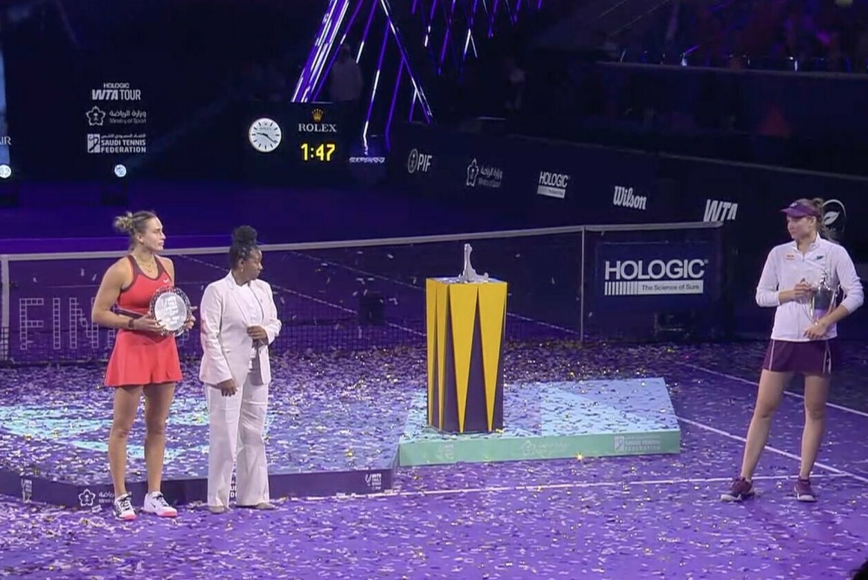Po finalo vykusioje apdovanojimų ceremonijoje E. Rybakina atsisakė artintis prie WTA generalinės direktorės Portios Archer ir nepanoro pozuoti šalia jos bendrai nuotraukai. E. Rybakina nepaaiškino, kodėl taip pasielgė, bet ekspertai greitai padarė išvadą, jog tai susiję su E. Rybakinos treneriu Stefanu Vukovu.