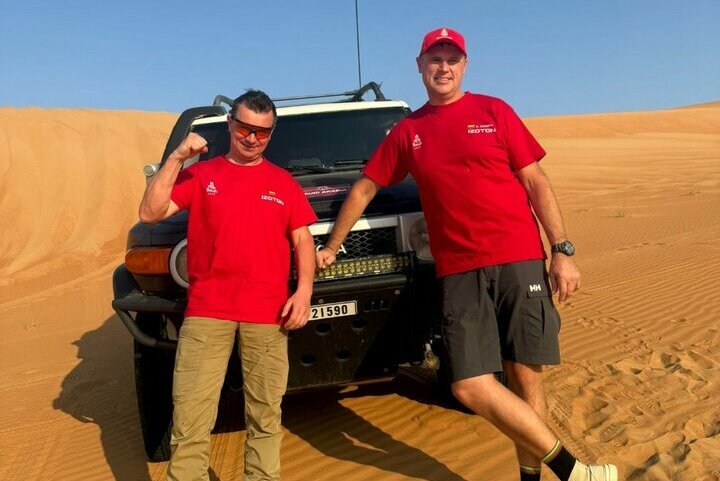 Galiausiai „Izotono sporto“ duetas nusprendė, kad vien tik varžybų nepakanka ir pakėlė sparnus į Jungtinius Arabų Emyratus, kur keletą dienų mokėsi važiavimo per kopas paslapčių iš Dakaro ralio legendos Antano Juknevičiaus.