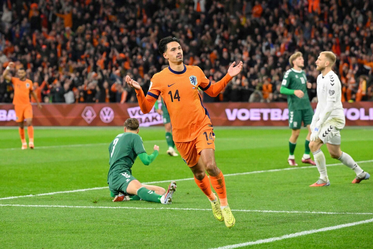Tijjani Reijndersas puikiu smūgiu nuginklavo vartininką ir išvedė Nyderlandų rinktinę į priekį 1:0.
