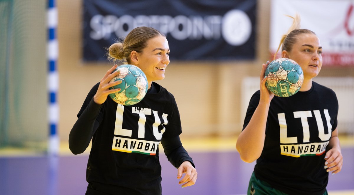 Kairieji kraštai: Dominyka Andronik (Vilniaus SM „Sostinės tauras“) ir Martyna Vaitkutė („Cascada-HC Garliava“).