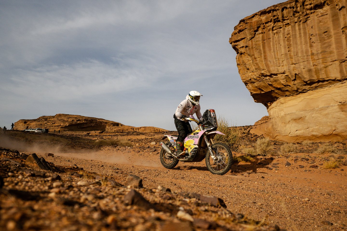 Gale trasos sutikau lietuvių fanų grupę. Ties jais vos nenusiverčiau, nes buvo akmenys, grioviai. Per dieną motociklui nieko nesugadinau, tik dugno apsaugą sulaužiau. Ratlankiai sveiki, tai liks tik pakeisti padangas. Reikia išsimiegoti, nes šį rytą atsikėliau ketvirtą valandą kai pajutau, kad iš čiužinio dingo oras“, - sakė „Planet Superfood Lietuva“ lenktynininkas Mykolas Paulavičius.