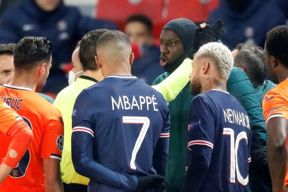 16-ą minutę prieš save raudoną kortelę išvydo „Basaksehir“ trenerio asistentas Pierre'as Webo, o netrukus prie teisėjo pribėgo keletas žaidėjų. Kurį laiką teisėjai aiškinosi, kas čia įvyko, kol galiausiai Turkijos klubo žaidėjas Demba Ba apkaltino teisėją iš Rumunijos Sebastianą Coltescu rasistiniais pasisakymais ir 24-ą minutę aikštelę paliko abiejų komandų žaidėjai.