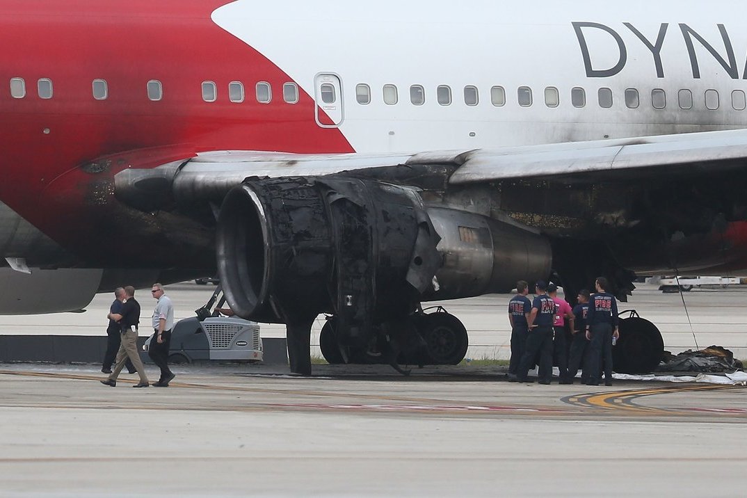 Brauardo apygardos šerifo biuras nurodė, kad užsiliepsnojo lėktuvo „Boeing 767“, kuris turėjo skristi į Venesuelą iš Fort Loderdeilio, variklis.