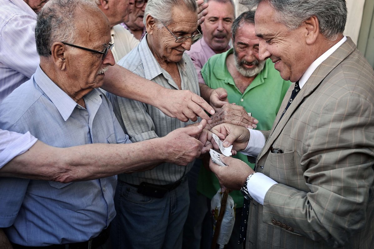 Atėnų centre žmonės kantriai laukė eilėse 8 val. (vietos ir Lietuvos laiku), kada turėjo atsidaryti durys, išsiėmę numerėlius ir skaitydami laikraščius.