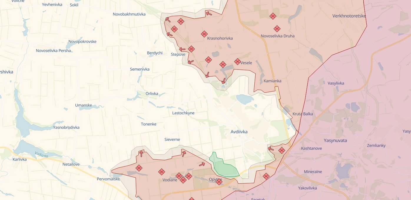 Ukraina ir toliau kontroliuoja Stepovės kaimą, suteikiantį prieigą prie tiekimo maršruto Avdijivkos link. Pasak britų žvalgybos, mažai tikėtina, kad bent artimiausias septynias dienas Rusijai pavyktų atkirsti miestą.