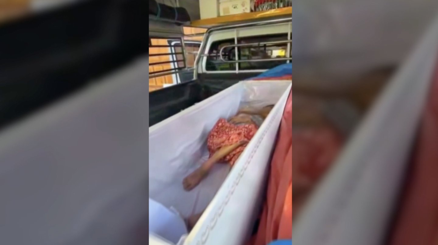 Iš karsto išlaisvintą tailandietę medikai nuvežė ligoninę, o šventykla, kurioje jos vos nesudegino, sutiko sumokėti už jos gydymą.
