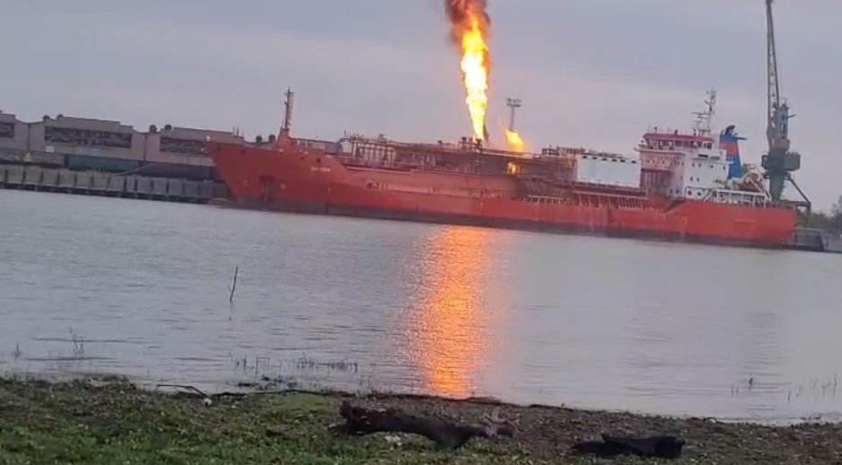 Tačiau nurodoma, kad ukrainiečių gelbėjimo tarnybos vis dar gesina gaisrą laive, pildami ant jo vandenį iš kito laivo, atsiųsto į Izmajilo uostą.