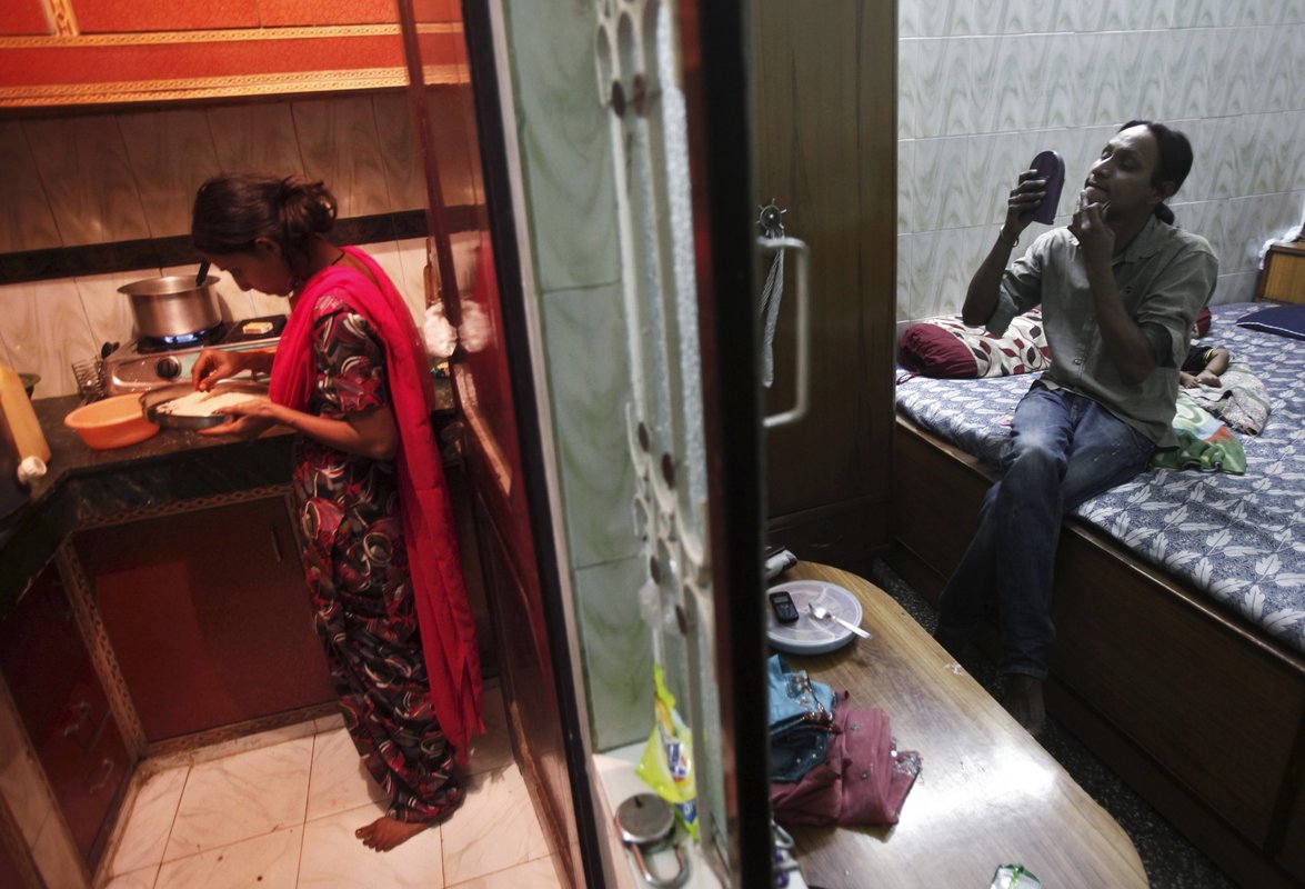 Nuotraukoje matome rausvais drabužiais apsirengusią moterį, kuri pozuoja nevyriausybinės organizacijos suteiktuose jai ir tokio paties likimo moterims namuose. Suteiktas kambarys – daugiau nei paprastas. Ant medinių sienų kabo įvairiausi plakatai, o kambario kampe stovi televizorius.