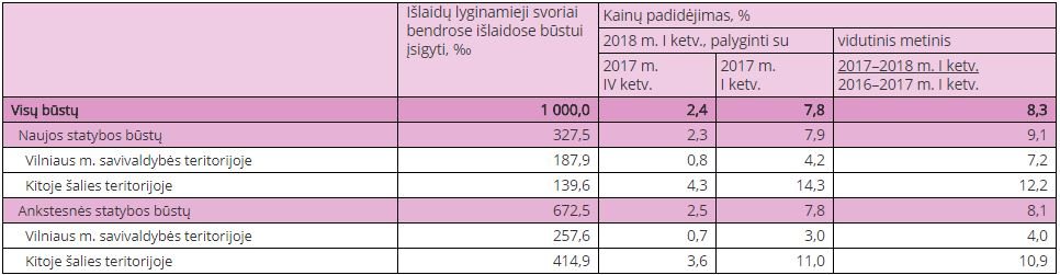 Per metus, tai yra 2018 m. pirmąjį ketvirtį, palyginti su 2017 m. pirmuoju ketvirčiu, būsto kainos iš viso padidėjo 7,8 proc.