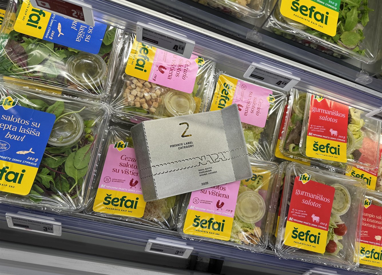 Šiemet gegužės 29 d. jau 10-ą kartą Lietuvos dizaino asociacijos surengti apdovanojimai „NAPA Baltic“ – vieninteliai tokio plataus masto ir svarbos pakuotės dizaino apdovanojimai Baltijos regione. Vien konkurso finale varžėsi per pusšimtis pakuočių, 2024-2025 metais sukurtų ne tik Baltijos šalyse, bet ir Lenkijoje, Suomijoje, Ukrainoje. Privačių prekių ženklų kategorijoje atnaujintas „IKI šefų“ pakuočių dizainas pelnė antrą vietą.