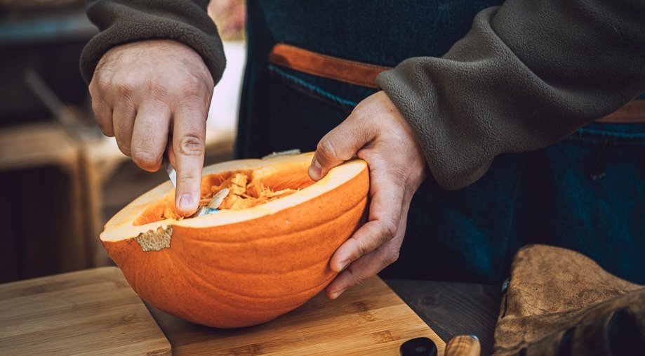 Restorano virtuvėje virėja kaip tik pjausto moliūgą – ruošia patiekalus. Tada moliūgą apkepa, prideda virtų bulvių, viską sutrina ir mikliai formuoja kukulaičius su įdaru. Restorano meniu – net keli patiekalai iš šių ryškiaspalvių rudeninių daržovių: sriuba, pagrindiniai patiekalai, o smaližiams ir desertas