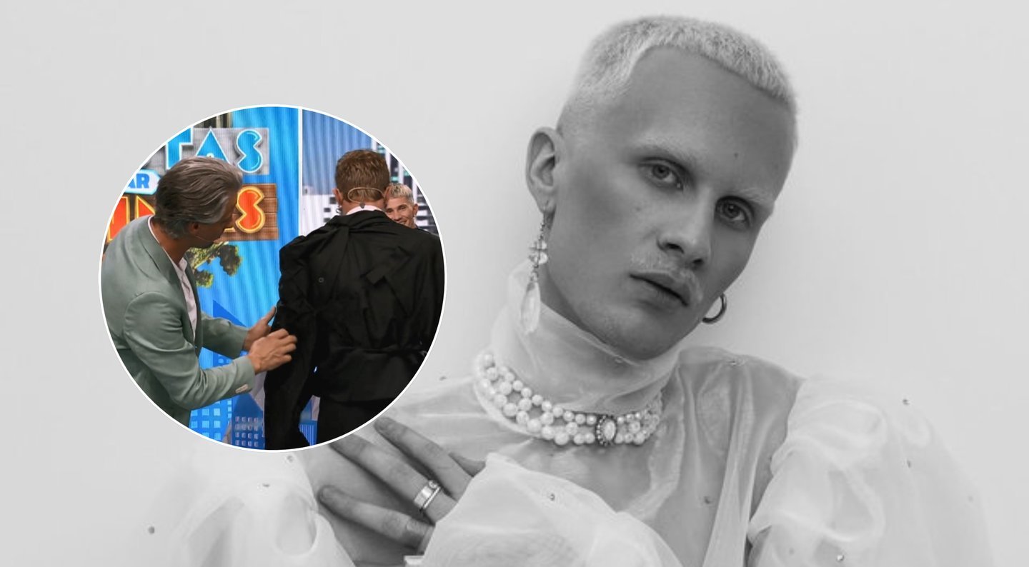 „Čia yra daug įvairių kelnių, sujungtų į švarką“, – stebėjosi laidos vedėjas Vytautas Rumšas jaunesnysis.
