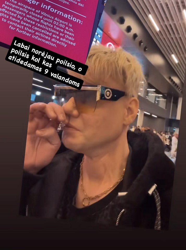 Savo „Instagram“ paskyroje Karolis pasidalijo istorija iš Vilniaus oro uosto, kur ekranuose mirgėjo perspėjimas apie laikinai uždarytą oro erdvę.