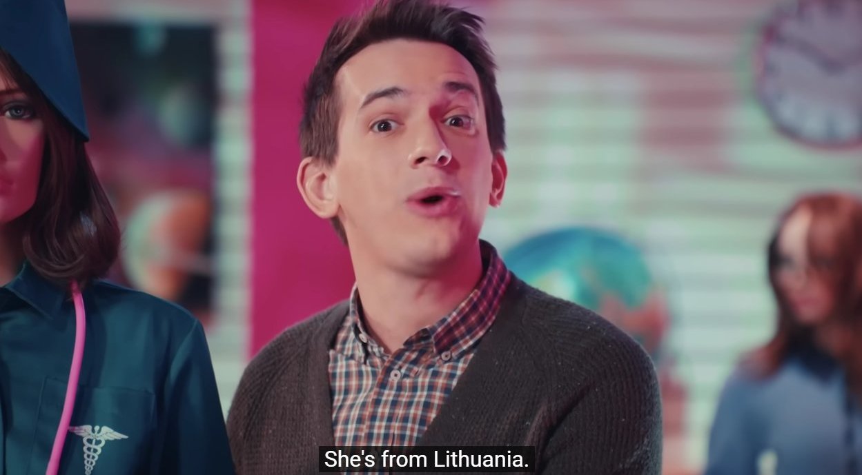 Buvo paminėta, kad lėlė slaugytoja, yra kilusi iš Lietuvos. Kai nuskambėjo šis sakinys, įsiterpė šou vedėja Nikki Glaser sakydama, kad lėlė iš tiesų yra amerikietė.