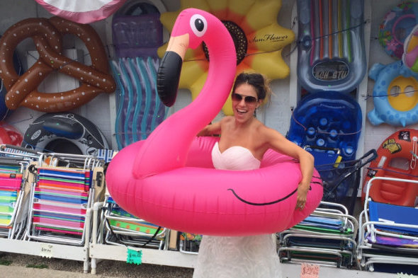 Samantha ir jos vestuvinė suknelė jau spėjo patirti nuotykių: išbandė žaisti golfą, keliavo automobiliu, apsipirkinėjo parduotuvėje.