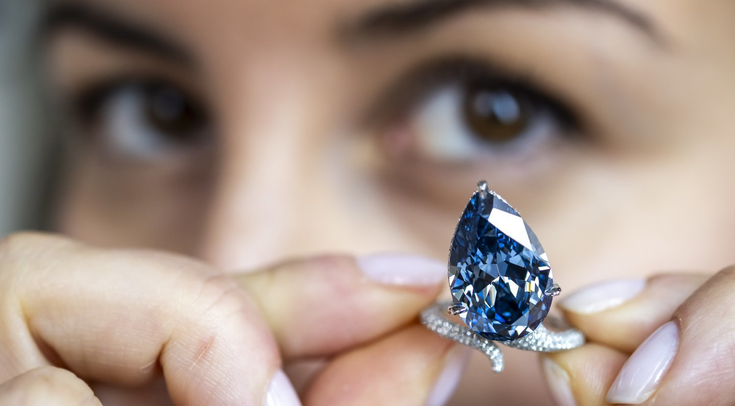 Į neįprastą žiedą įstatytas deimantas švyti mėlyna spalva, yra lašo formos ir 9,51 karato. Žiedą puošia ir daugiau baltų deimantų. Tai buvo brangiausias objektas šiame brangenybių aukcione. Jį įsigijęs asmuo dar turės sumokėti aukcionų namams daugiau kaip 20 proc. komisinių nuo kainos bei pridėtinės vertės mokestį – priklausomai nuo gyvenamosios vietos.