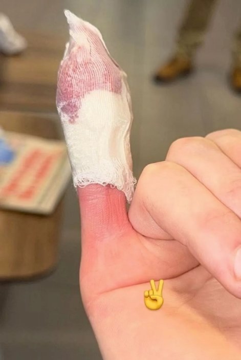 Nuotraukoje matyti balkšva tvarsliava, persisunkusi krauju – Beckhamų sūnus sužeidimo nekomentavo, palikdamas gerbėjus svarstyti, kas jam nutiko.